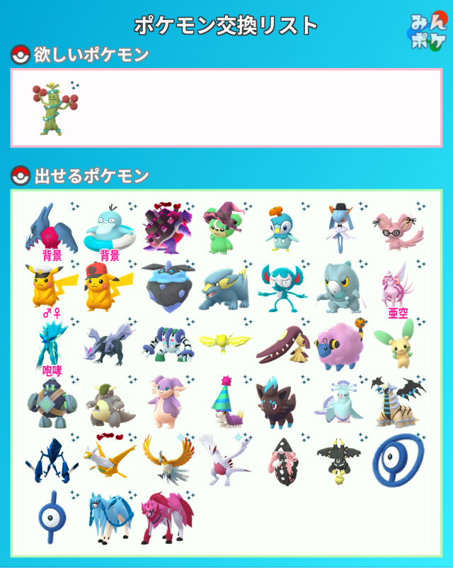 ポケモンGOでポケモンの交換相手を検索・募集するための掲示板です。