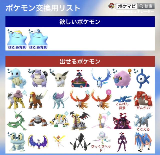 ポケモンGOでポケモンの交換相手を検索・募集するための掲示板です。