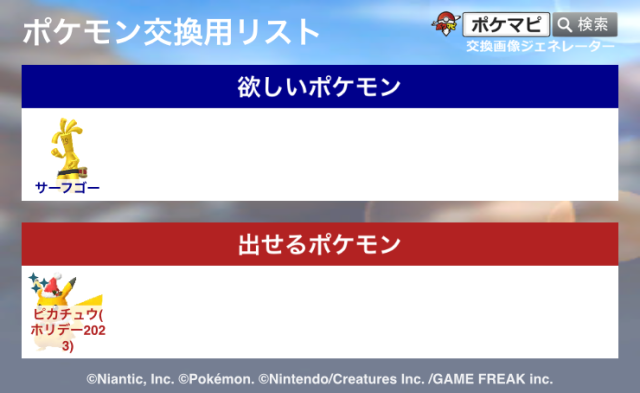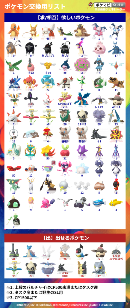 ポケモンGOでポケモンの交換相手を検索・募集するための掲示板です。