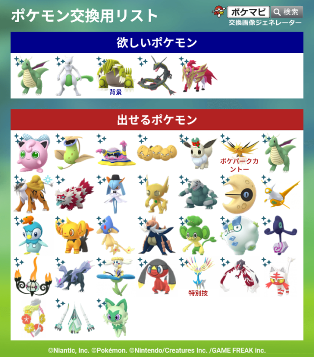 詳細なやり取り(TwitterIDなど):コメントにトレーナーコードと欲しいポケモン出せるポケモンを書いてください。