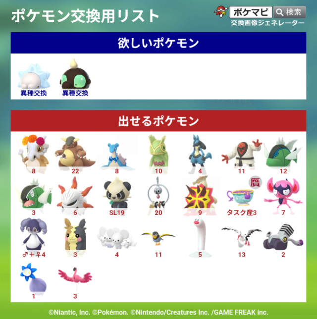 交換タスクを進めたい方用です。出せるポケモンは要望のを出せるわけではないので交換だけしたい方いたらよろしくお願いします
