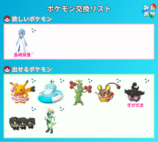 ポケモンGOでポケモンの交換相手を検索・募集するための掲示板です。
