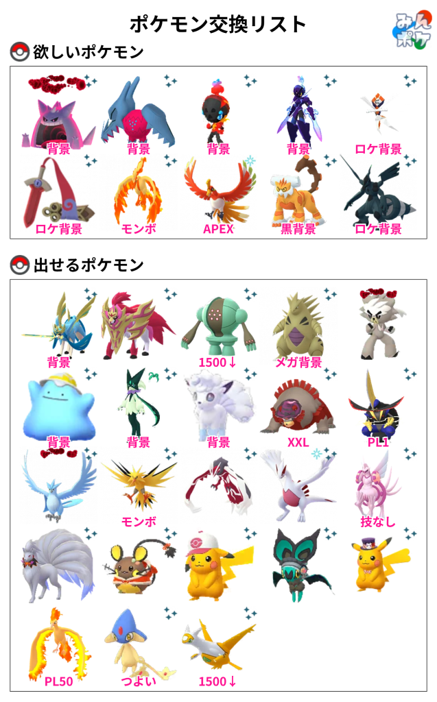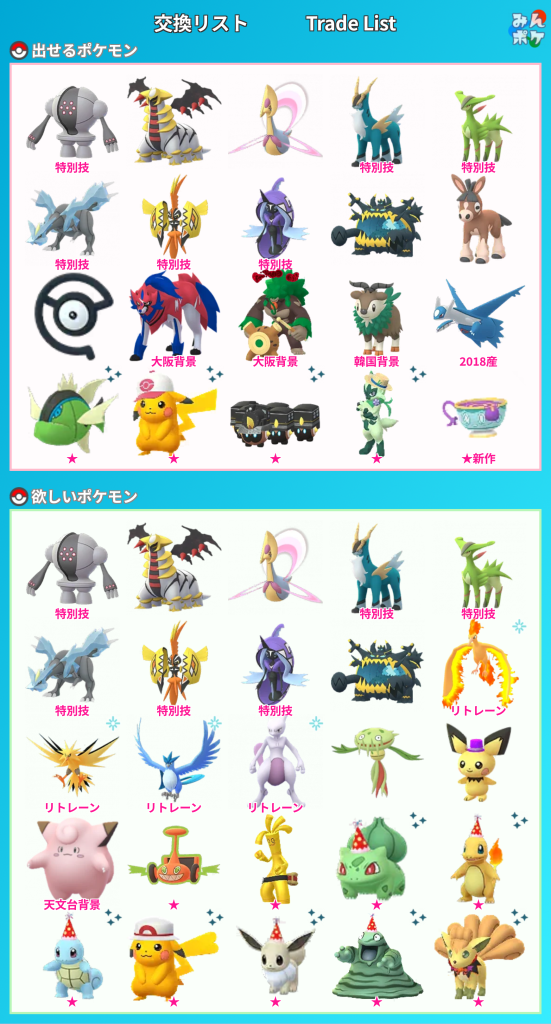 交換対象はポケモン同士のみとし、金銭やプロモーションコードなどポケモン以外の物やサービスを含めることを禁止します。投稿内容に都道府県を含めることで地域検索にヒットしやすくなります。