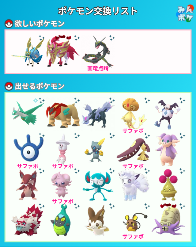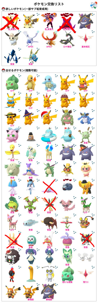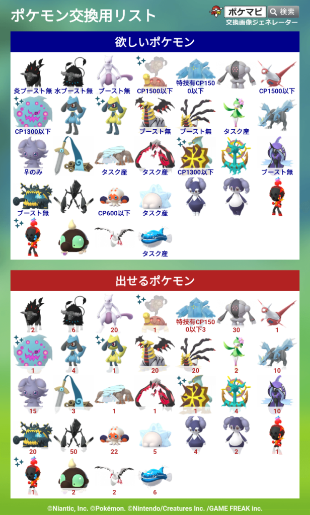 交換対象はポケモン同士のみとし、金銭やプロモーションコードなどポケモン以外の物やサービスを含めることを禁止します。投稿内容に都道府県を含めることで地域検索にヒットしやすくなります。