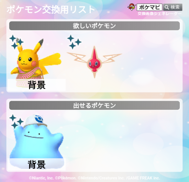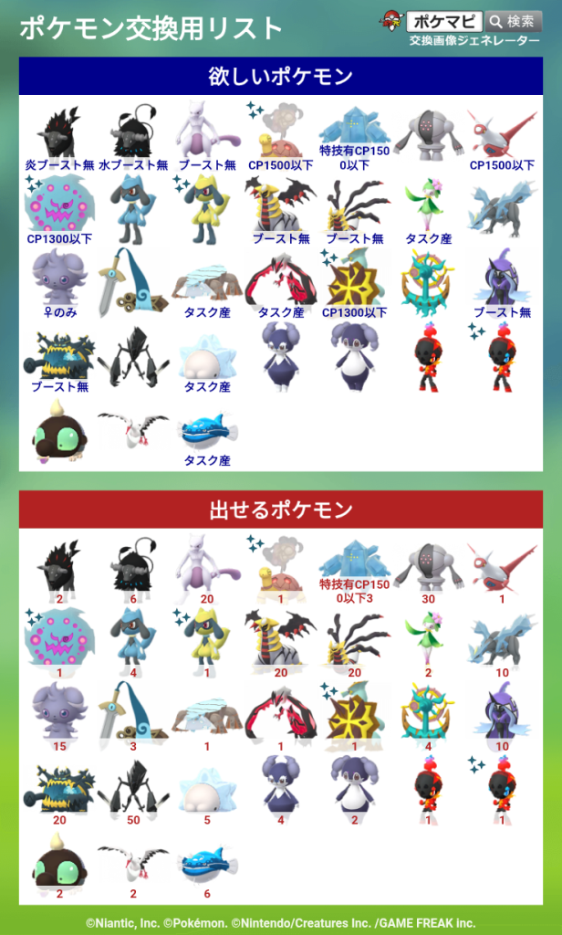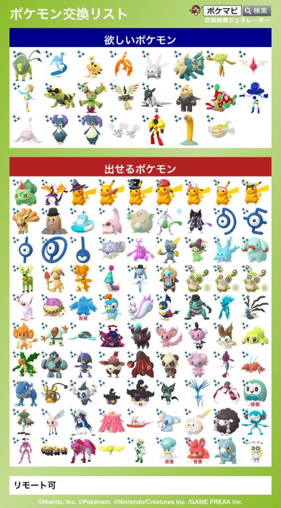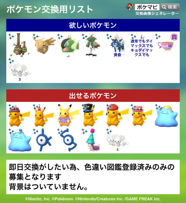 交換対象はポケモン同士のみとし、金銭やプロモーションコードなどポケモン以外の物やサービスを含めることを禁止します。投稿内容に都道府県を含めることで地域検索にヒットしやすくなります。