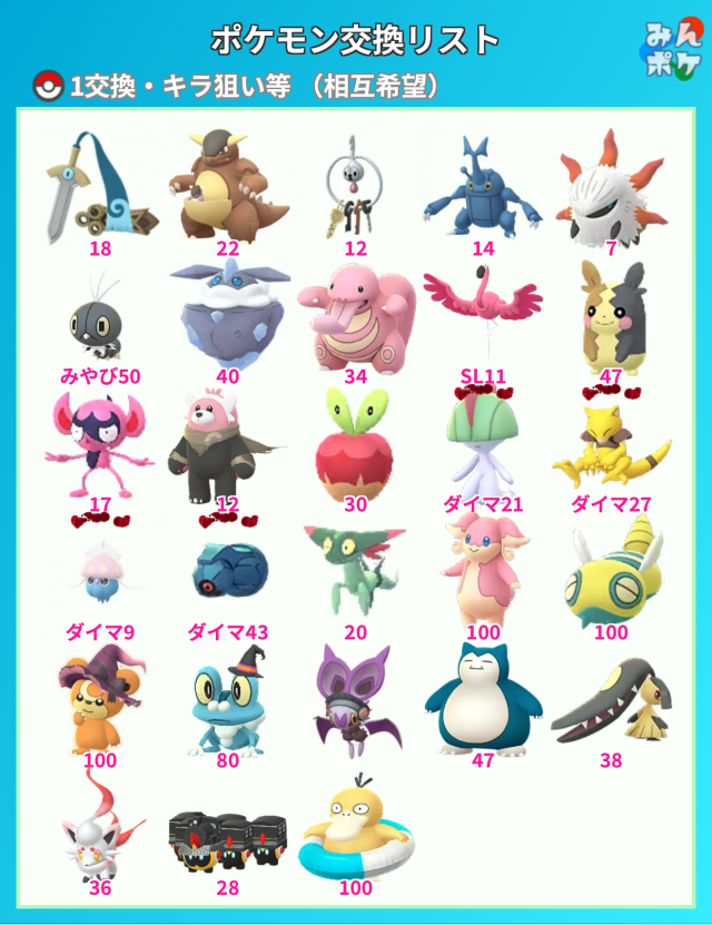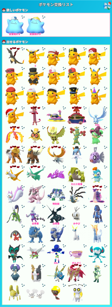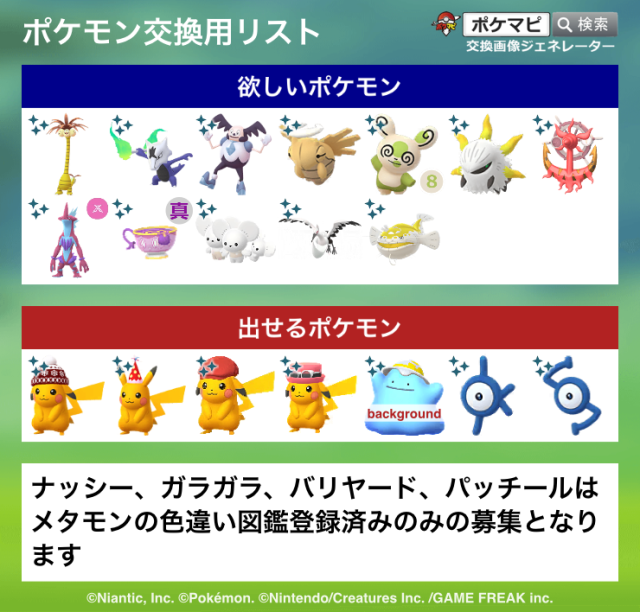 交換対象はポケモン同士のみとし、金銭やプロモーションコードなどポケモン以外の物やサービスを含めることを禁止します。投稿内容に都道府県を含めることで地域検索にヒットしやすくなります。