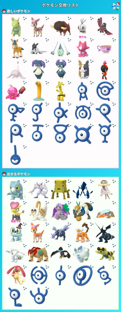 詳細なやり取り(TwiteriDなど): 非対面希望。ポケモンによっては色達い未登録のため親友以降希望(そちらがほしのすな気にしないのでしたら早めに交換出来ます)