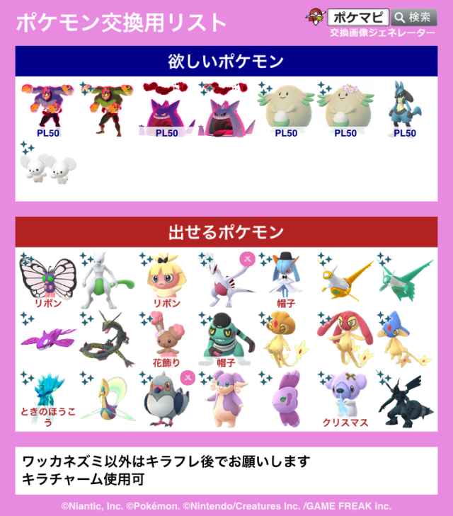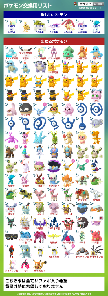 ポケモンGOでポケモンの交換相手を検索・募集するための掲示板です。