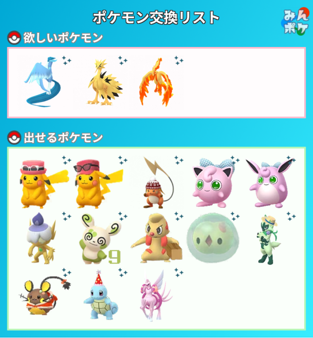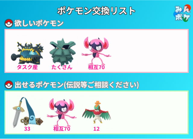 交換対象はポケモン同士のみとし、金銭やプロモーションコードなどポケモン以外の物やサービスを含めることを禁止します。投稿内容に都道府県を含めることで地域検索にヒットしやすくなります。