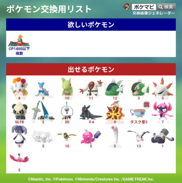 ポケモン(求):CP1400以下ルチャブル複数異種交換