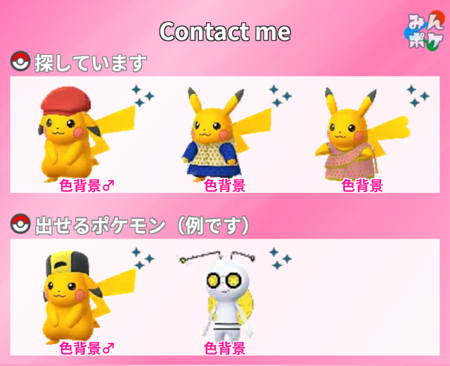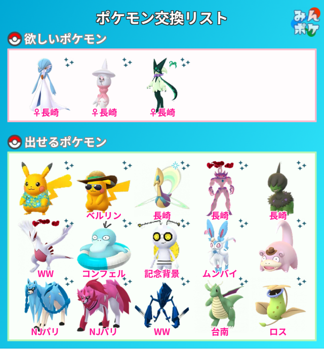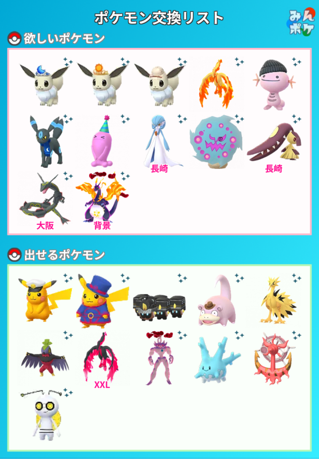 交換対象はポケモン同士のみとし、金銭やプロモーションコードなどポケモン以外の物やサービスを含めることを禁止します。投稿内容に都道府県を含めることで地域検索にヒットしやすくなります。
