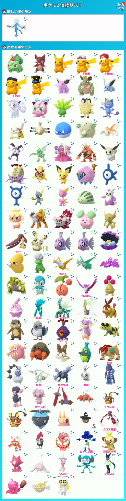 ポケモンGOでポケモンの交換相手を検索・募集するための掲示板です。