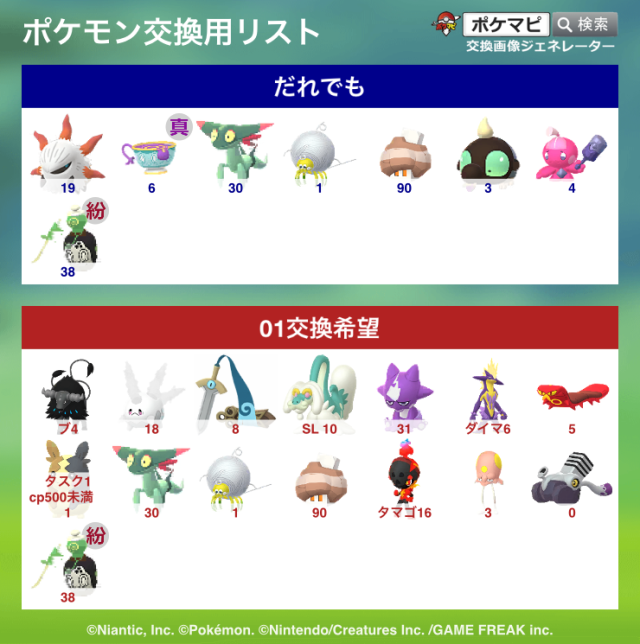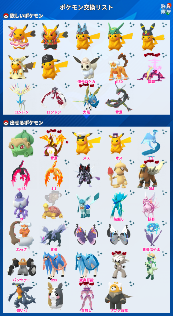 交換対象はポケモン同士のみとし、金銭やプロモーションコードなどポケモン以外の物やサービスを含めることを禁止します。投稿内容に都道府県を含めることで地域検索にヒットしやすくなります。