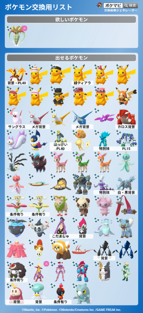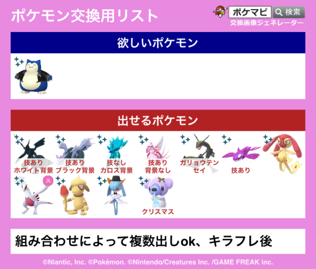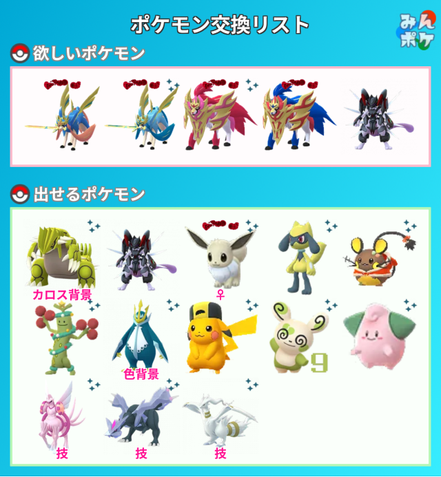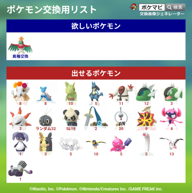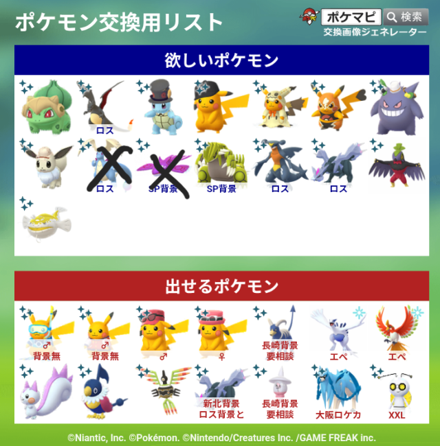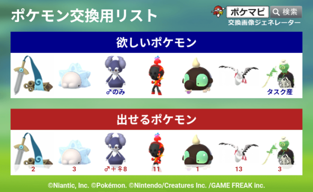 交換対象はポケモン同士のみとし、金銭やプロモーションコードなどポケモン以外の物やサービスを含めることを禁止します。投稿内容に都道府県を含めることで地域検索にヒットしやすくなります。
