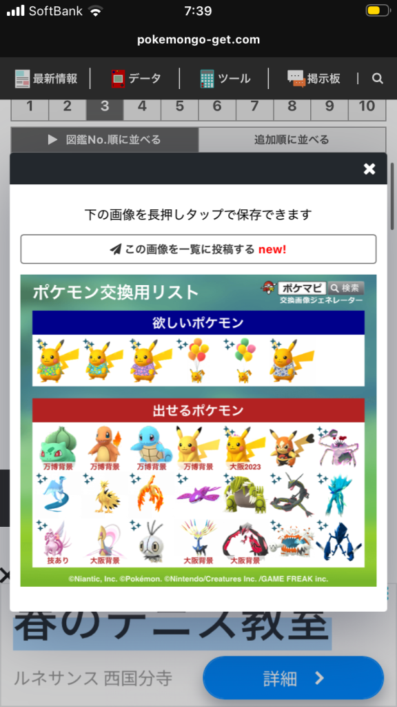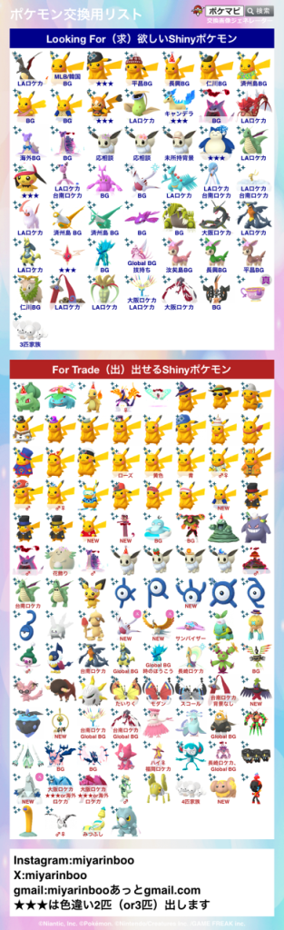 ポケモンGOでポケモンの交換相手を検索・募集するための掲示板です。