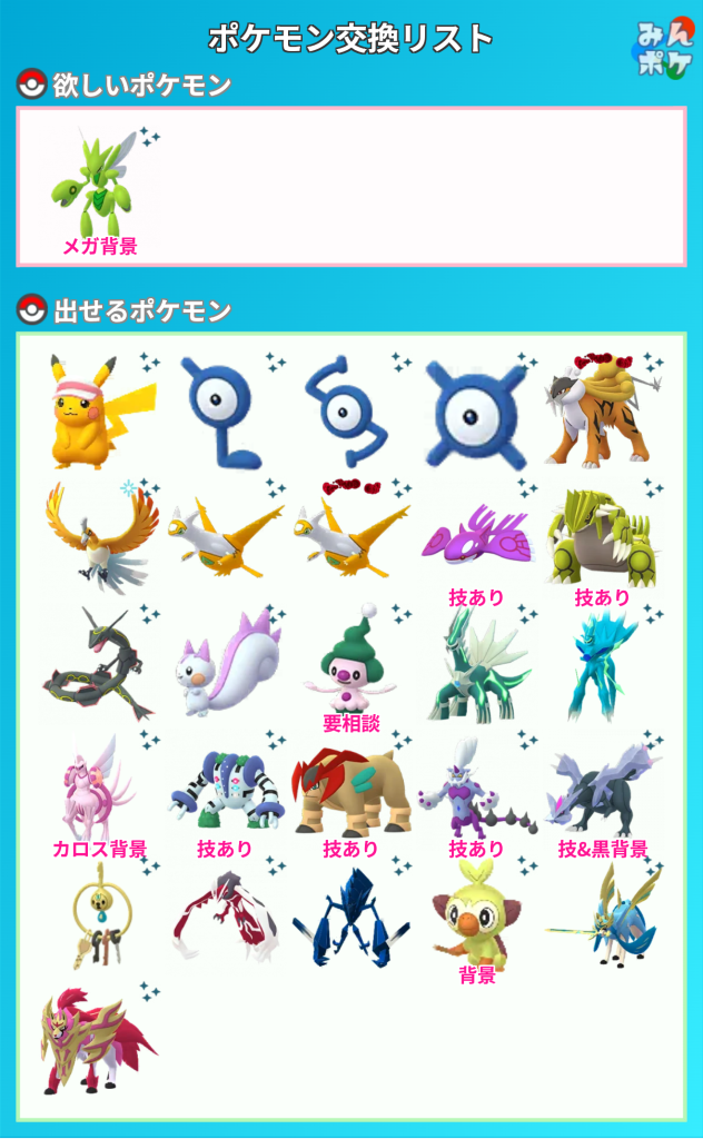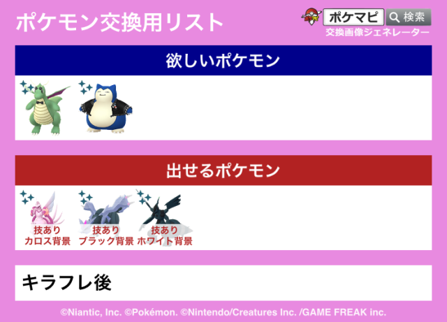 交換対象はポケモン同士のみとし、金銭やプロモーションコードなどポケモン以外の物やサービスを含めることを禁止します。投稿内容に都道府県を含めることで地域検索にヒットしやすくなります。
