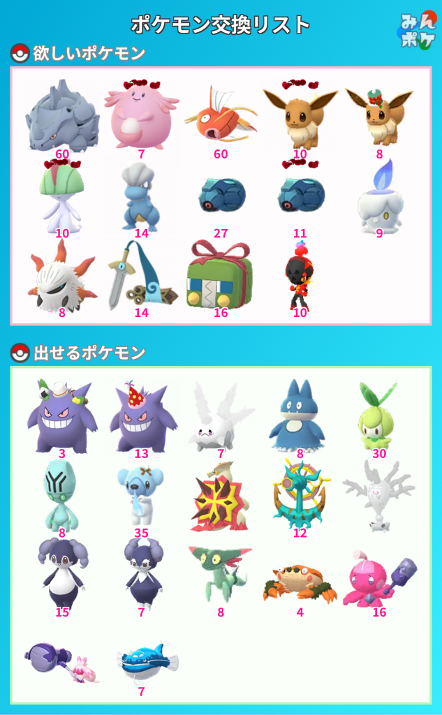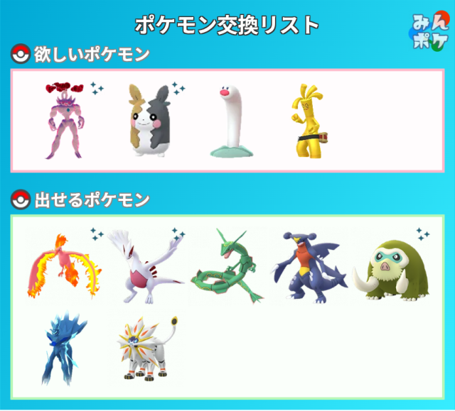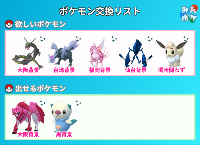交換対象はポケモン同士のみとし、金銭やプロモーションコードなどポケモン以外の物やサービスを含めることを禁止します。投稿内容に都道府県を含めることで地域検索にヒットしやすくなります。