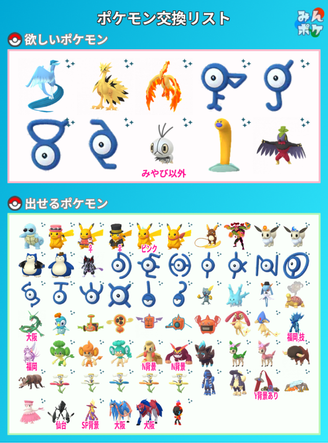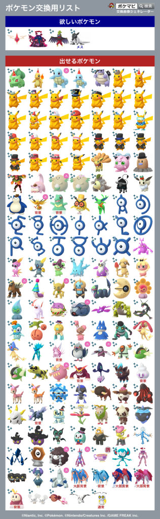 交換対象はポケモン同士のみとし、金銭やプロモーションコードなどポケモン以外の物やサービスを含めることを禁止します。投稿内容に都道府県を含めることで地域検索にヒットしやすくなります。