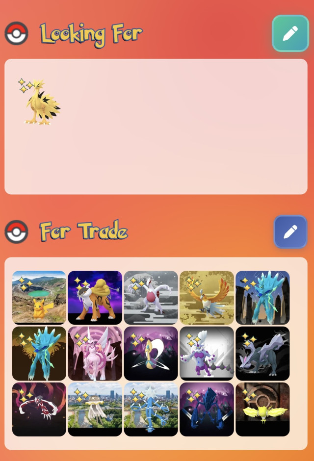 ※こちらキラチャーム負担、そちらもキラチャーム負担するなら2体提供も検討します。但し、2体目は特別交換枠の関係で後日お渡しになります。色ガラルサンダーは要先渡。