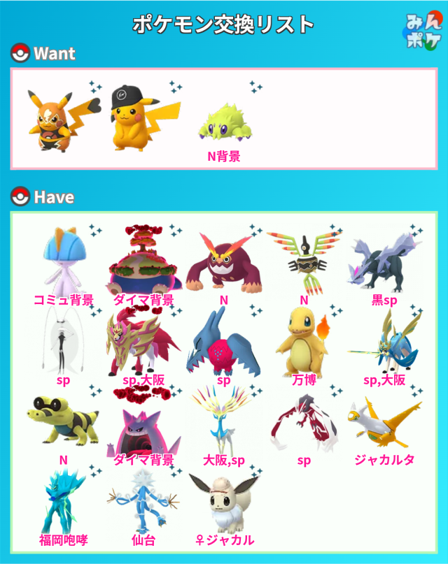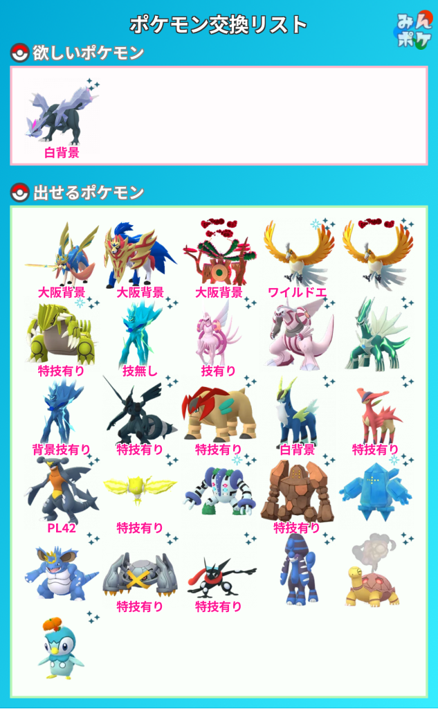 交換対象はポケモン同士のみとし、金銭やプロモーションコードなどポケモン以外の物やサービスを含めることを禁止します。投稿内容に都道府県を含めることで地域検索にヒットしやすくなります。