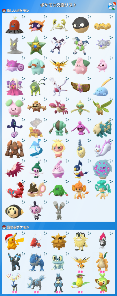 交換対象はポケモン同士のみとし、金銭やプロモーションコードなどポケモン以外の物やサービスを含めることを禁止します。投稿内容に都道府県を含めることで地域検索にヒットしやすくなります。
