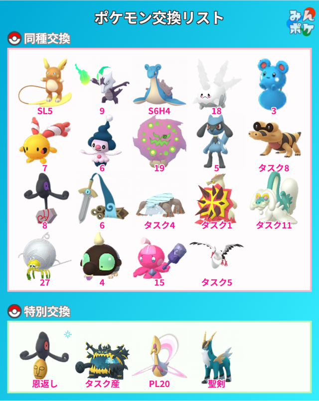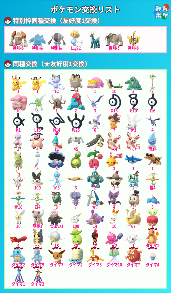 一応画像のポケモンも同種交換できます。