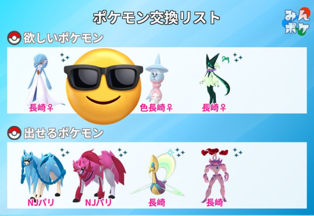 交換対象はポケモン同士のみとし、金銭やプロモーションコードなどポケモン以外の物やサービスを含めることを禁止します。投稿内容に都道府県を含めることで地域検索にヒットしやすくなります。