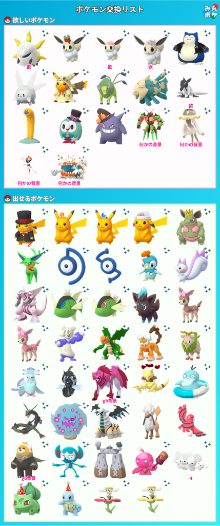 ポケモンGOでポケモンの交換相手を検索・募集するための掲示板です。