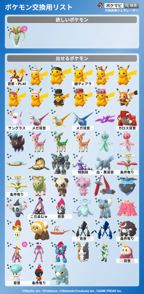 他にもロケーション背景のポケモンやSP背景のポケモンの色違いも探しているので何でもご相談ください。