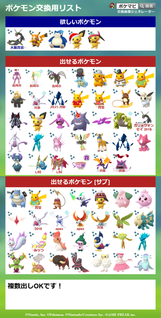 ポケモンGOでポケモンの交換相手を検索・募集するための掲示板です。