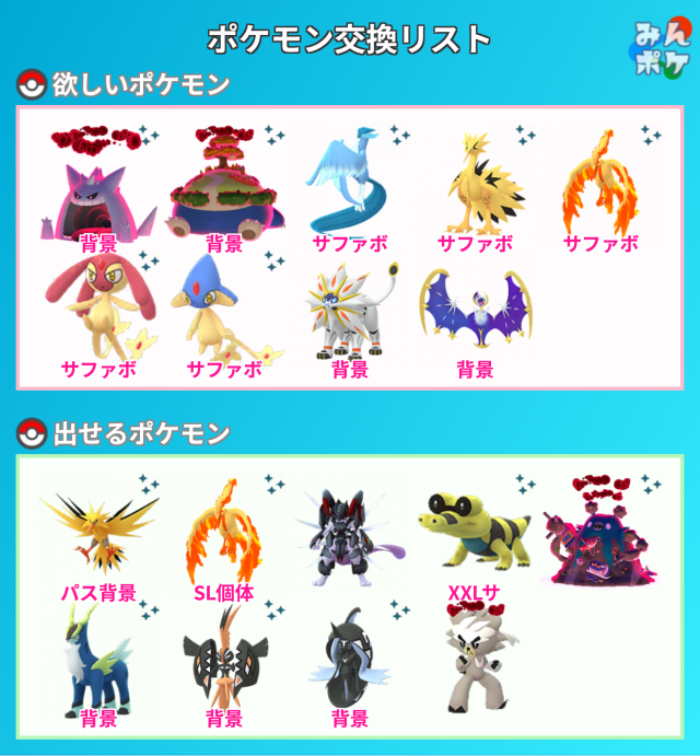 交換対象はポケモン同士のみとし、金銭やプロモーションコードなどポケモン以外の物やサービスを含めることを禁止します。投稿内容に都道府県を含めることで地域検索にヒットしやすくなります。