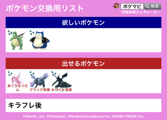 交換対象はポケモン同士のみとし、金銭やプロモーションコードなどポケモン以外の物やサービスを含めることを禁止します。投稿内容に都道府県を含めることで地域検索にヒットしやすくなります。