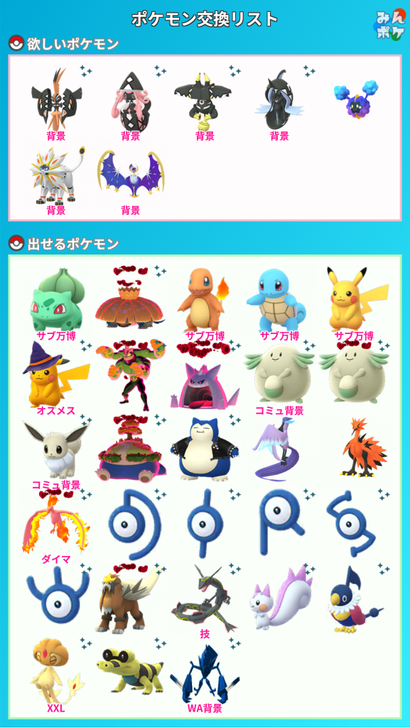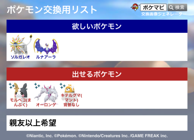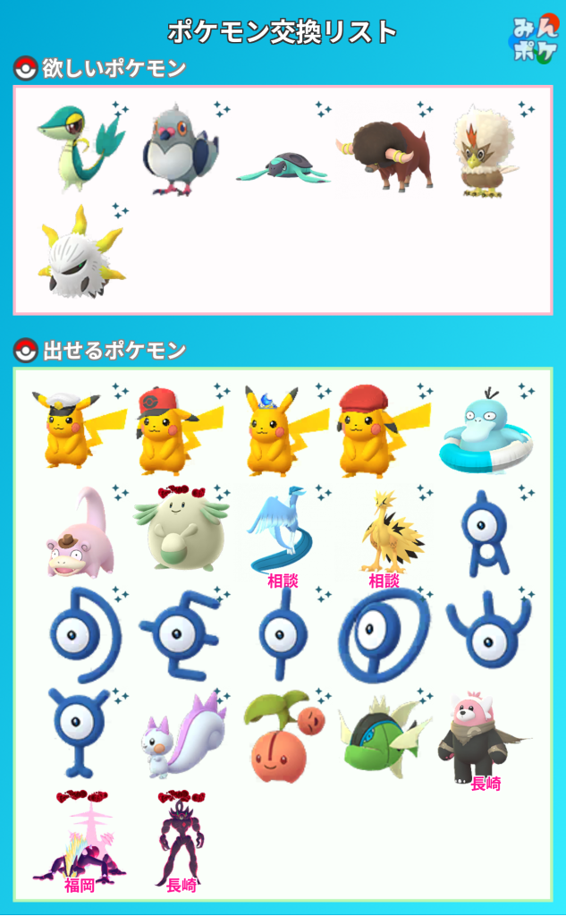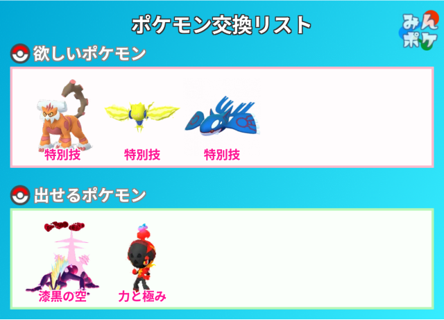 交換対象はポケモン同士のみとし、金銭やプロモーションコードなどポケモン以外の物やサービスを含めることを禁止します。投稿内容に都道府県を含めることで地域検索にヒットしやすくなります。