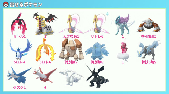 ポケモン(出):2月28日は特別交換5(3月1日は特別交換6)ギラティナアナザー2・ブースト無しアクジキング2・ブースト無し色違いクレセリア2・ブースト無し色違いカプ・レヒレ2・レジスチル2・キュレム2・ネクロズマ2・ブースト無しミュウツー2・特別技有りブースト無しディアルガオリジン2・特別技有りブースト無しパルキアオリジン2・ブースト無し色違い霊獣ランドロス2・ブースト無し色違いレックウザ2・特別技有りレジドラゴ2