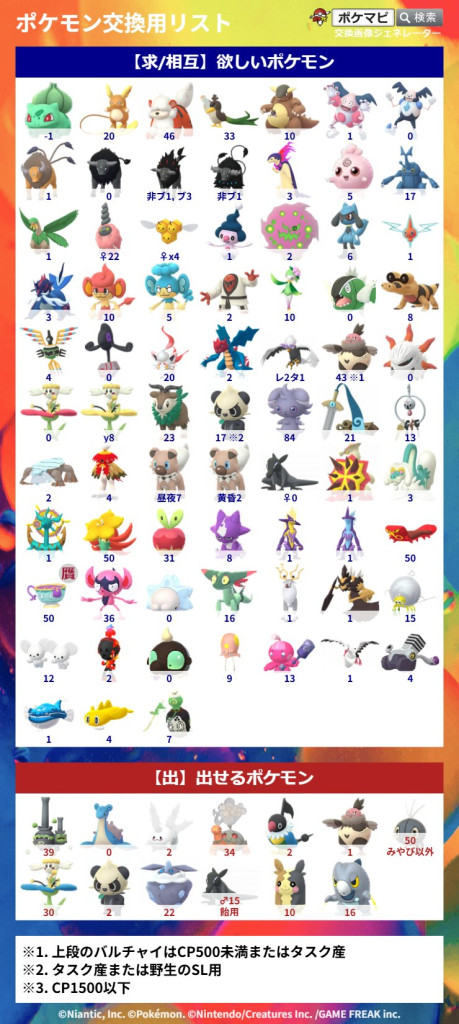 ポケモンGOでポケモンの交換相手を検索・募集するための掲示板です。