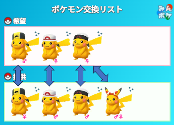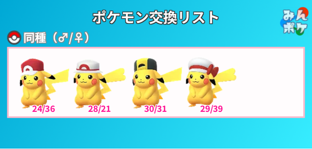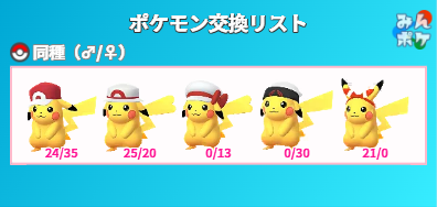 コスチュームピカチュウの♂♀同種100交換募集です