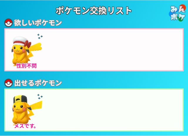 交換対象はポケモン同士のみとし、金銭やプロモーションコードなどポケモン以外の物やサービスを含めることを禁止します。投稿内容に都道府県を含めることで地域検索にヒットしやすくなります。