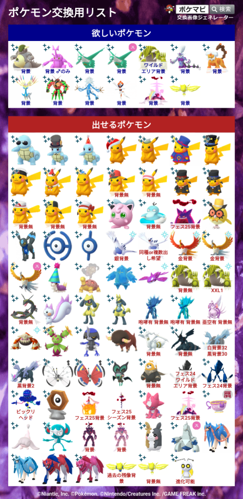 ポケモンGOでポケモンの交換相手を検索・募集するための掲示板です。