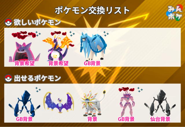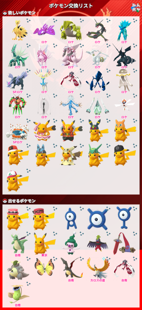 交換対象はポケモン同士のみとし、金銭やプロモーションコードなどポケモン以外の物やサービスを含めることを禁止します。投稿内容に都道府県を含めることで地域検索にヒットしやすくなります。
