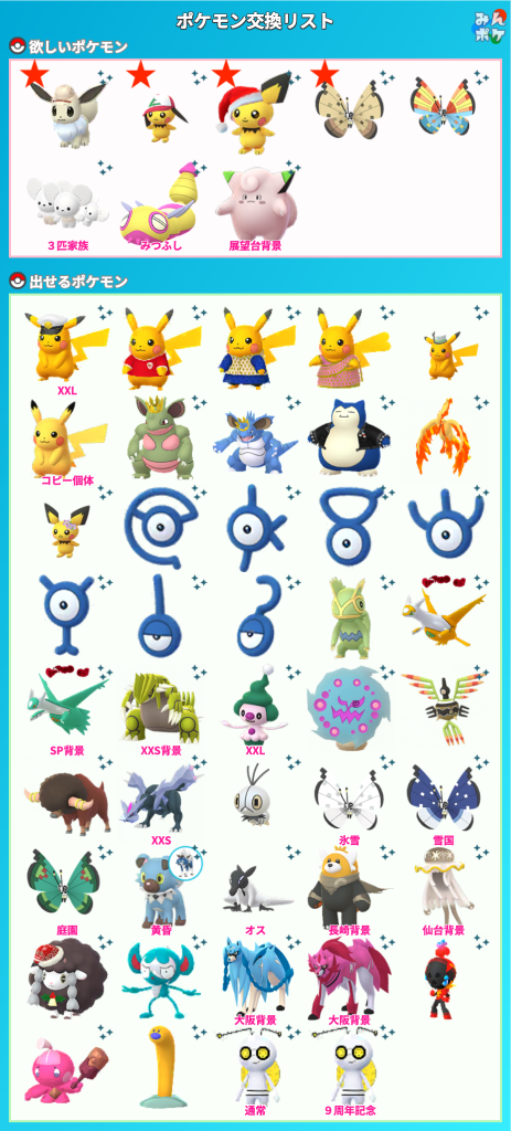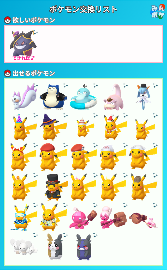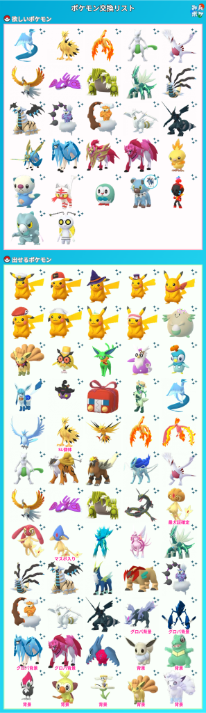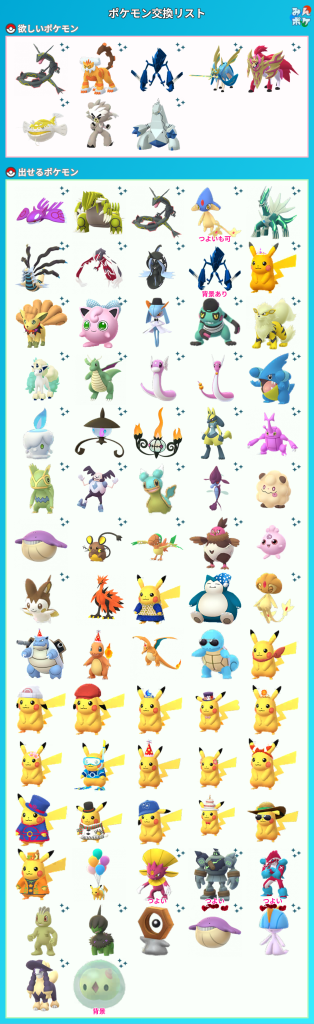 ポケモンGOでポケモンの交換相手を検索・募集するための掲示板です。