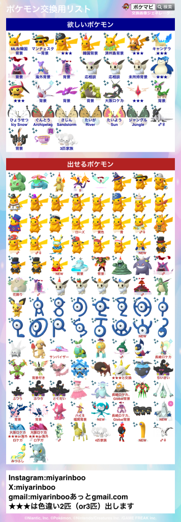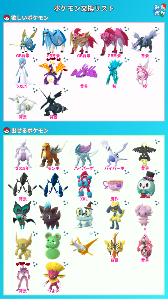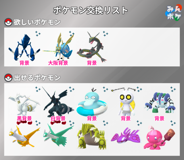 交換対象はポケモン同士のみとし、金銭やプロモーションコードなどポケモン以外の物やサービスを含めることを禁止します。投稿内容に都道府県を含めることで地域検索にヒットしやすくなります。
