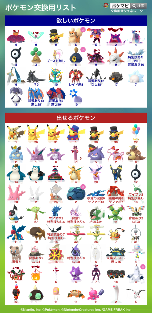 ポケモンGOでポケモンの交換相手を検索・募集するための掲示板です。