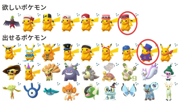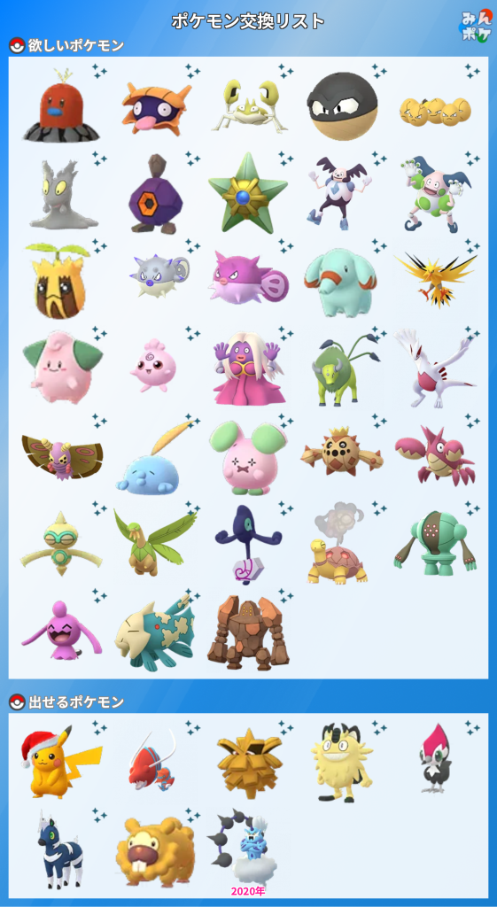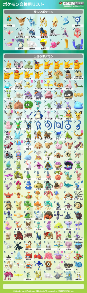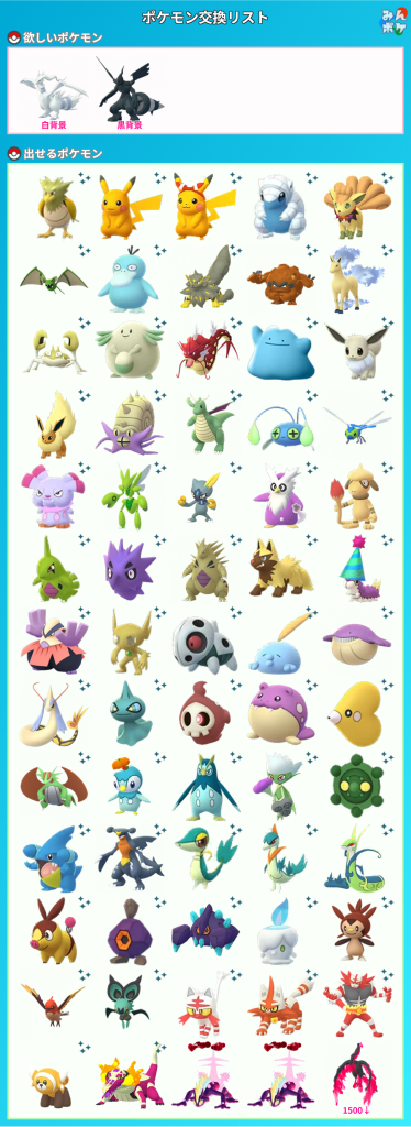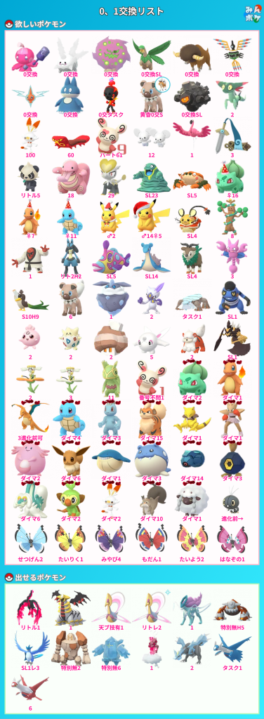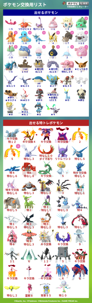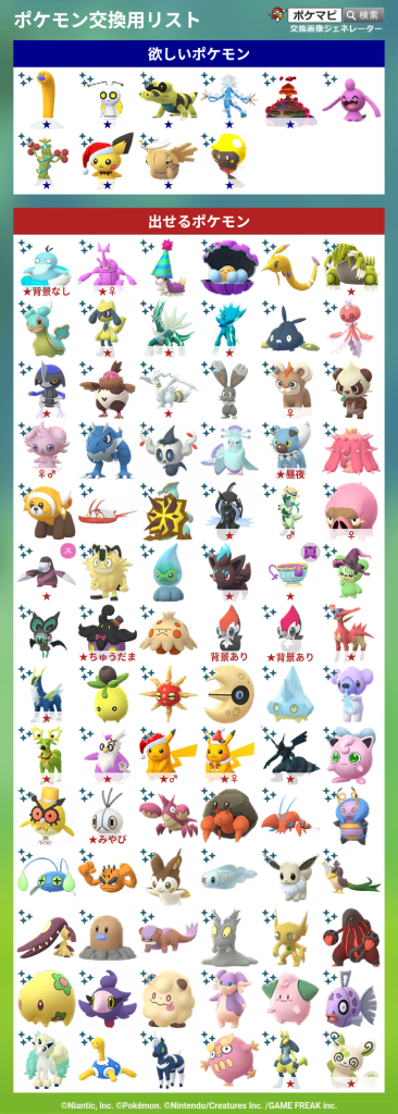 上記のポケモンをお出しいただける場合は、リストの☆ポケモン中からお好きなものを同数お出しします。