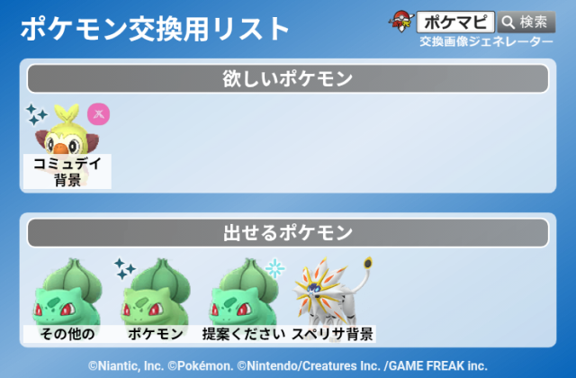 交換対象はポケモン同士のみとし、金銭やプロモーションコードなどポケモン以外の物やサービスを含めることを禁止します。投稿内容に都道府県を含めることで地域検索にヒットしやすくなります。