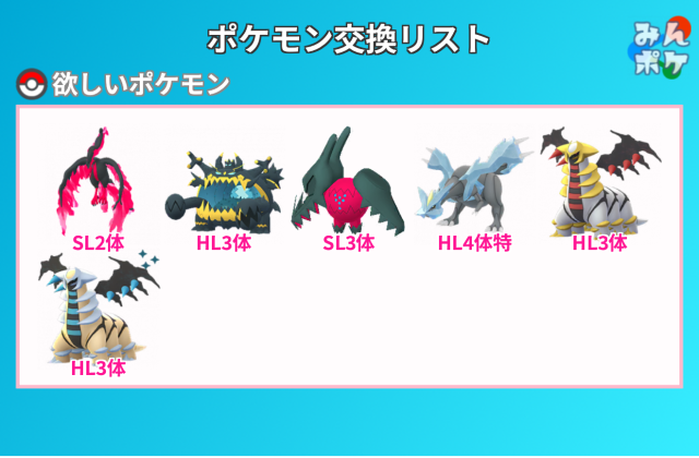ポケモン(求):特別交換6×2(要相談)・ブースト無しアクジキング・ブースト無しカプ・レヒレ・ギラティナアナザー・ブースト無しキュレム・ブースト無しネクロズマ・ブースト無し特別技ありディアルガオリジン・ブースト無し特別技ありパルキアオリジン等