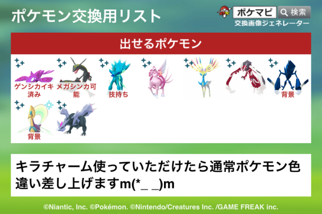 交換対象はポケモン同士のみとし、金銭やプロモーションコードなどポケモン以外の物やサービスを含めることを禁止します。投稿内容に都道府県を含めることで地域検索にヒットしやすくなります。