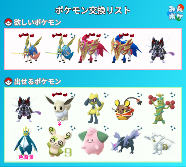 交換対象はポケモン同士のみとし、金銭やプロモーションコードなどポケモン以外の物やサービスを含めることを禁止します。投稿内容に都道府県を含めることで地域検索にヒットしやすくなります。