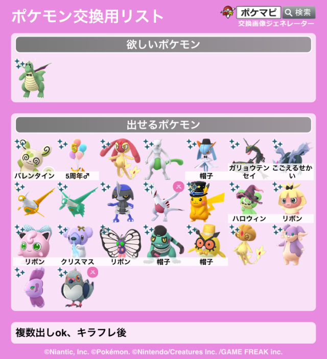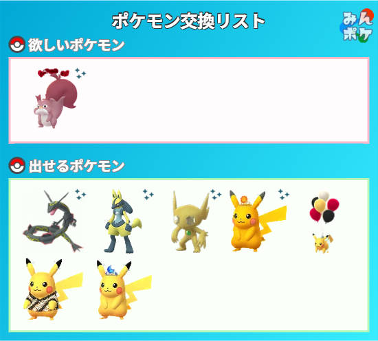 交換希望場所:新宿ポケモン広場、秋葉原ヨドバシカメラ付近、池袋ドンキホーテ付近、JR川崎駅、桜木町など
