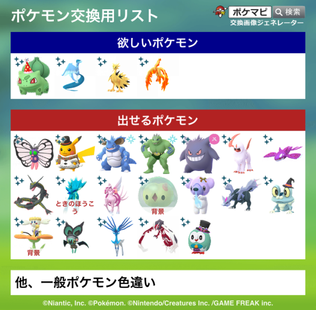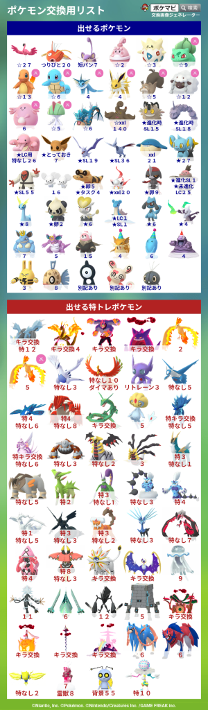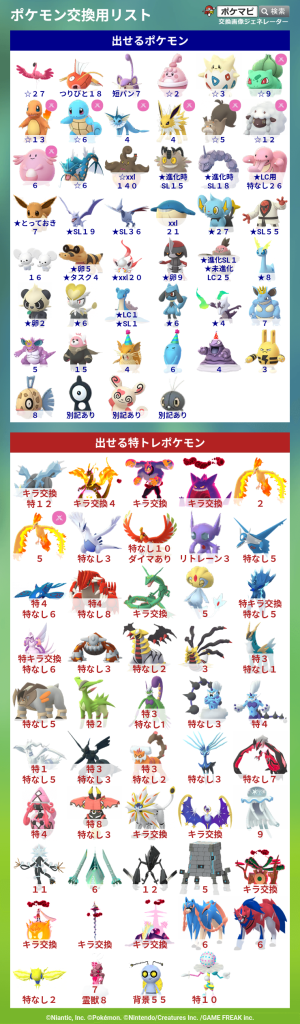 ポケモンGOでポケモンの交換相手を検索・募集するための掲示板です。