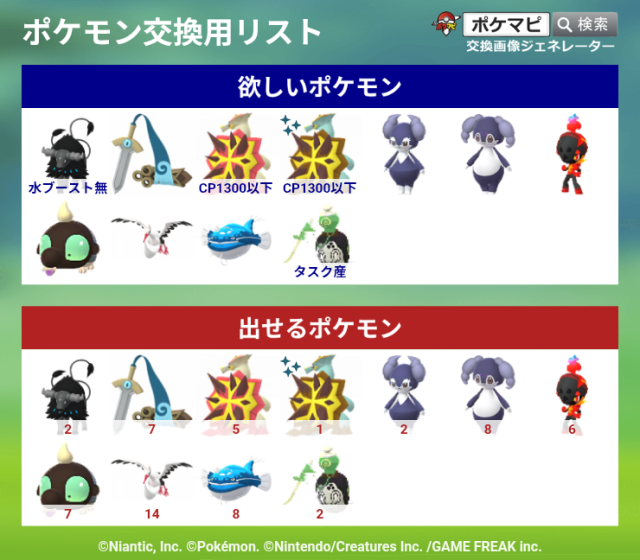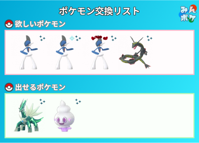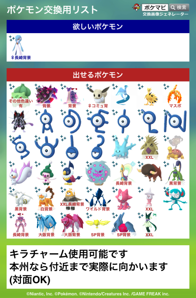 交換対象はポケモン同士のみとし、金銭やプロモーションコードなどポケモン以外の物やサービスを含めることを禁止します。投稿内容に都道府県を含めることで地域検索にヒットしやすくなります。